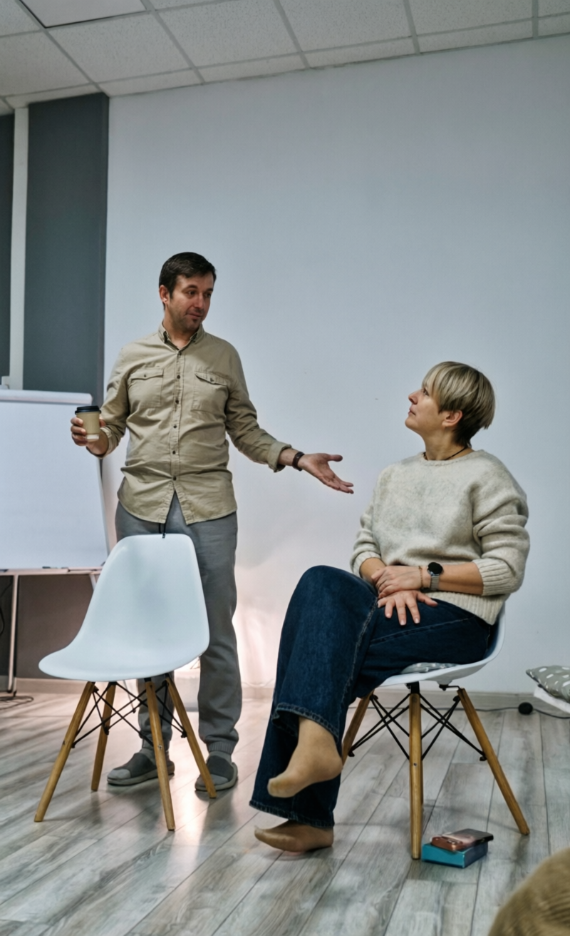 Чтобы изменить реакцию, закреплённую 20–30 лет, нужно многократно прожить ситуацию иначе. Не один раз. Не в теории. А в реальном контакте.
